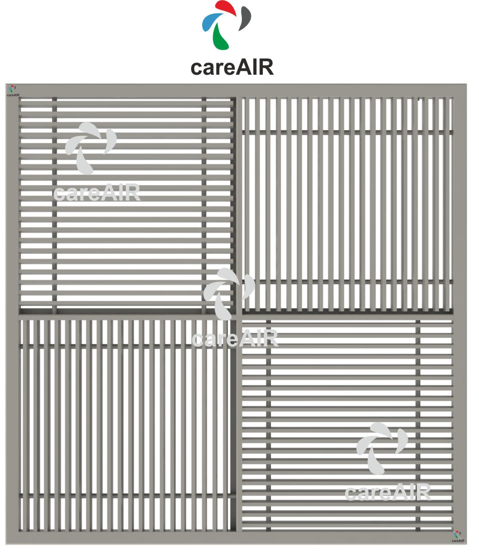 Four-way grilles in HVAC systems are air distribution components designed to supply air in four different directions simultaneously. They are commonly used in ceiling-mounted applications and are ideal for ensuring even air distribution in a room. These grilles are often seen in spaces requiring balanced and efficient airflow, such as offices, conference rooms, and commercial buildings. Designed with blades or louvers arranged to direct air in four distinct directions, typically 90 degrees apart. Provides a uniform airflow pattern across the room